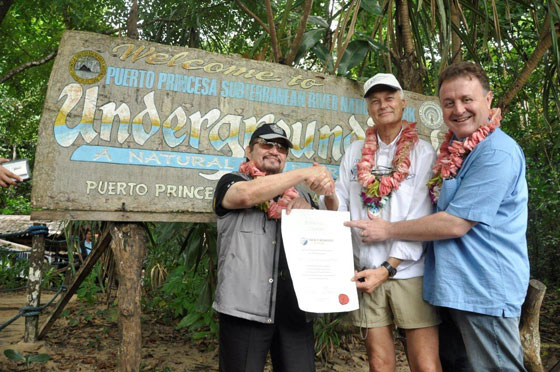 Argentina, Peru, Poland, the Philippines… the travel itinerary of the New7Wonders team spans the globe, as befits a truly worldwide campaign. The most recent stop was Puerto Princesa City in the western island of Palawan, one of 80 provinces that make up the Philippines. New7Wonders Founder and President Bernard Weber, accompanied by New7Wonders Director Jean-Paul de la Fuente, officially visited the Puerto Princesa Underground River (PPUR) and were given a 45-minute guided tour of the world’s longest navigable underground river by Puerto Princesa City Mayor Edward Hagedorn.
